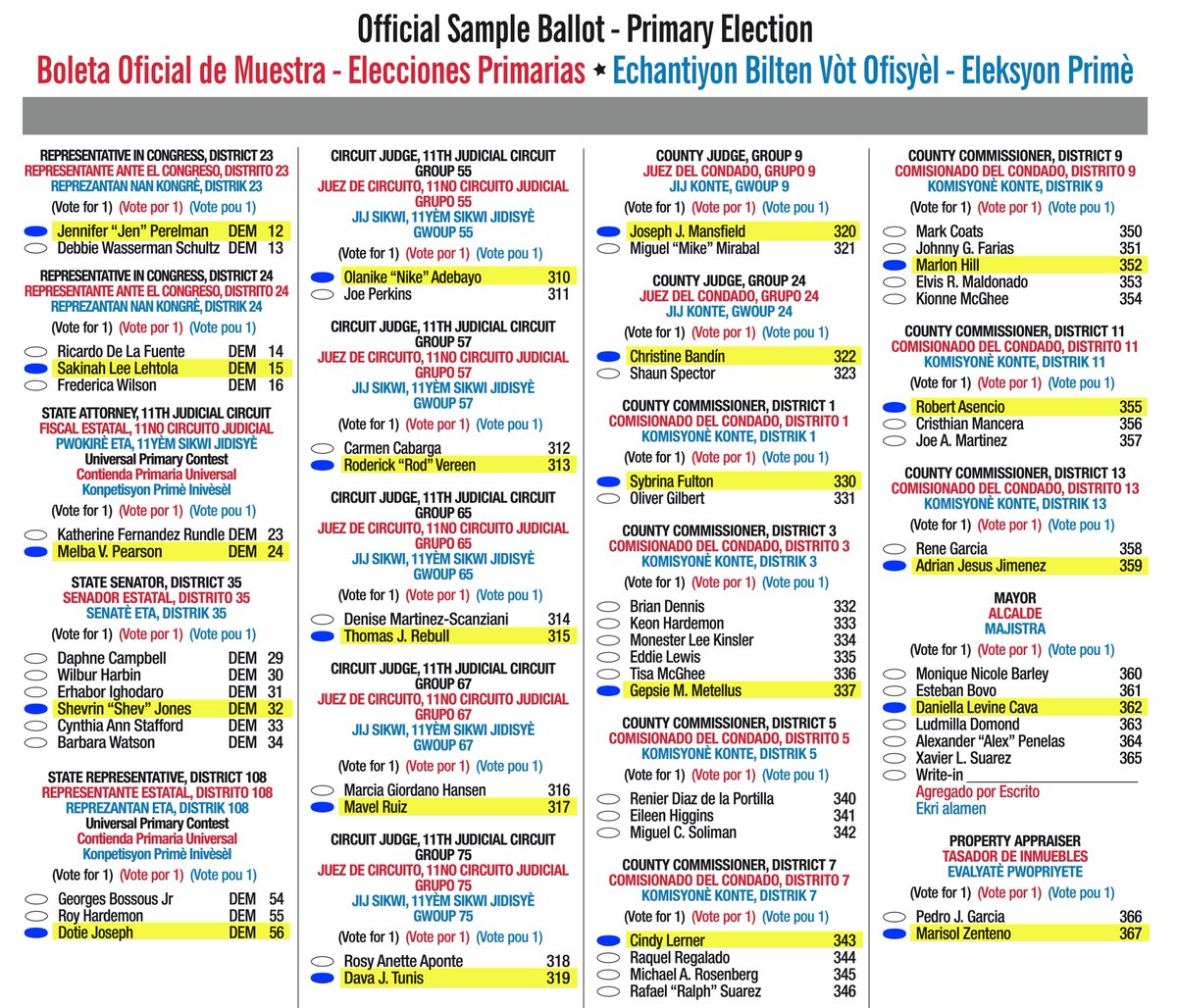 This november election miami dade democrats have the chance to vote in an entire slate of decent smart empathetic democrats from the presidency to the state house state senate county mayor s office county commission school board and municipal offices.
