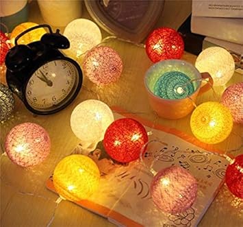 Buy 20 Led Fabric Cotton Ball String Fairy Lights Party Wedding Holiday Home Decorations Lamp Bulb Colorful Lights With Us Plug Features Price Reviews Online In India Justdial